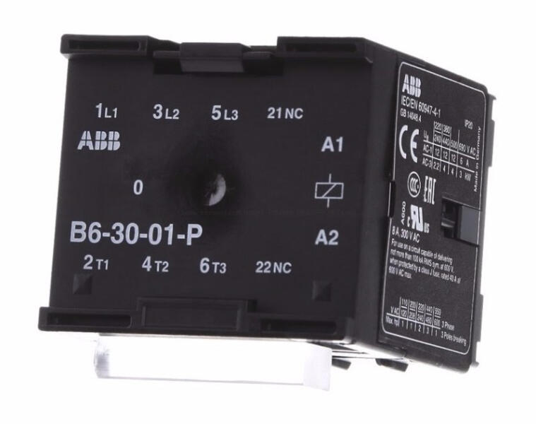 ABB B6-30-01-230AC mágneskapcsoló 4 kW / 8A AC3, 3P+1NC, csatlakozás: csavaros,