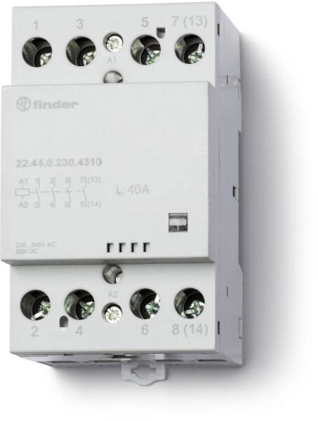FINDER 22.44. 0.230. 4610 Installációs mágneskapcsoló, kontaktor, 40A (AC-7a), 2NO+2NC, 230V AC/DC