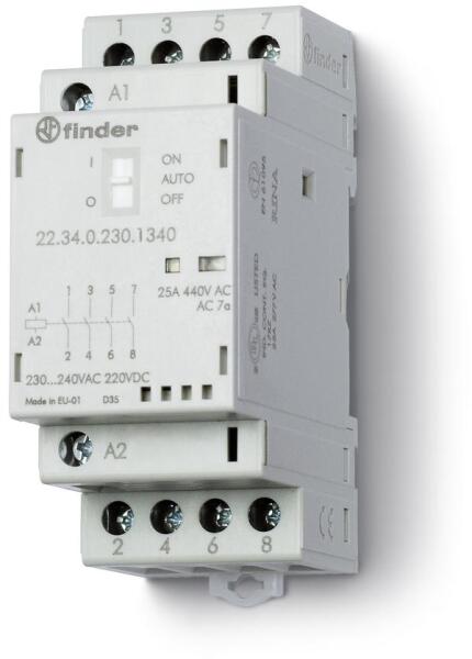 FINDER Installációs mágneskapcsoló, 4 záró, 230 V/DC, 230 V/AC, 25 A (223402301340) (22.34. 0.230. 1340)