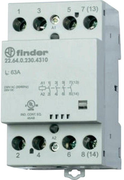 FINDER 22.64. 0.230. 4310 Installációs mágneskapcsoló, kontaktor, 63A , 4záró é. , 230V AC/DC mechanikus állapotjelzés