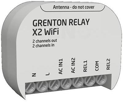 Grenton relé modul Wi-Fi-vel, két kimenettel, süllyesztett kivitelben, okosotthonokhoz tervezve.