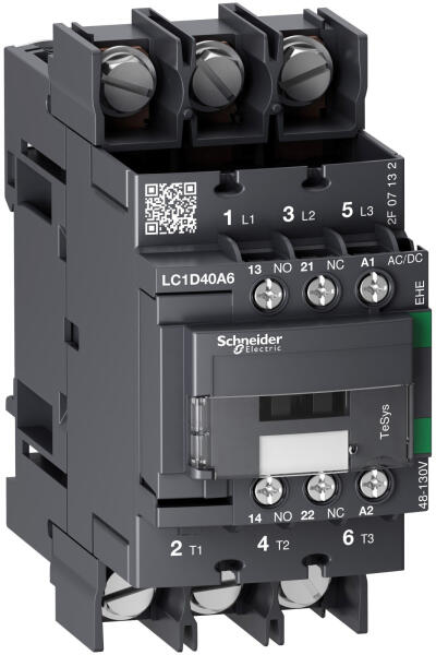 Schneider Electric TeSys D - LC1D40A6EHE - D mágneskapcsoló 3P 40A AC3 NO+NC 48 - 130V ACDC LUGS (LC1D40A6EHE)