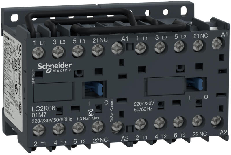 Schneider Electric TeSys K - LC2K0601F7 - Irányváltó mágneskapcsoló 6A, 1 nyitó, AC, 50/60 Hz (LC2K0601F7)