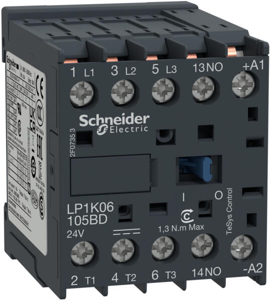 LP1-K09105BD Mágneskapcsoló 3P, 9A, Tekercs: 24V DC, Schneider