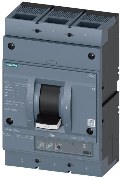 Megszakító 3VA2 \nA SENTRON 3VA2 öntött házas megszakítók hatékony védelmet nyújtanak túlterhelés és rövidzárlat esetén, moduláris kialakításukkal és széleskörű funkcióikkal. \n\n Műszaki adatok: \n