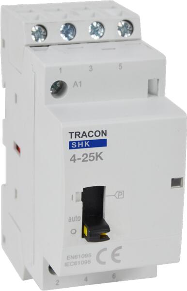 Tracon Installációs kontaktor, 230V AC, 50Hz, 2 Mod, 4xNO, AC1/AC7a, 25A (SHK4-25K) (SHK4-25K)